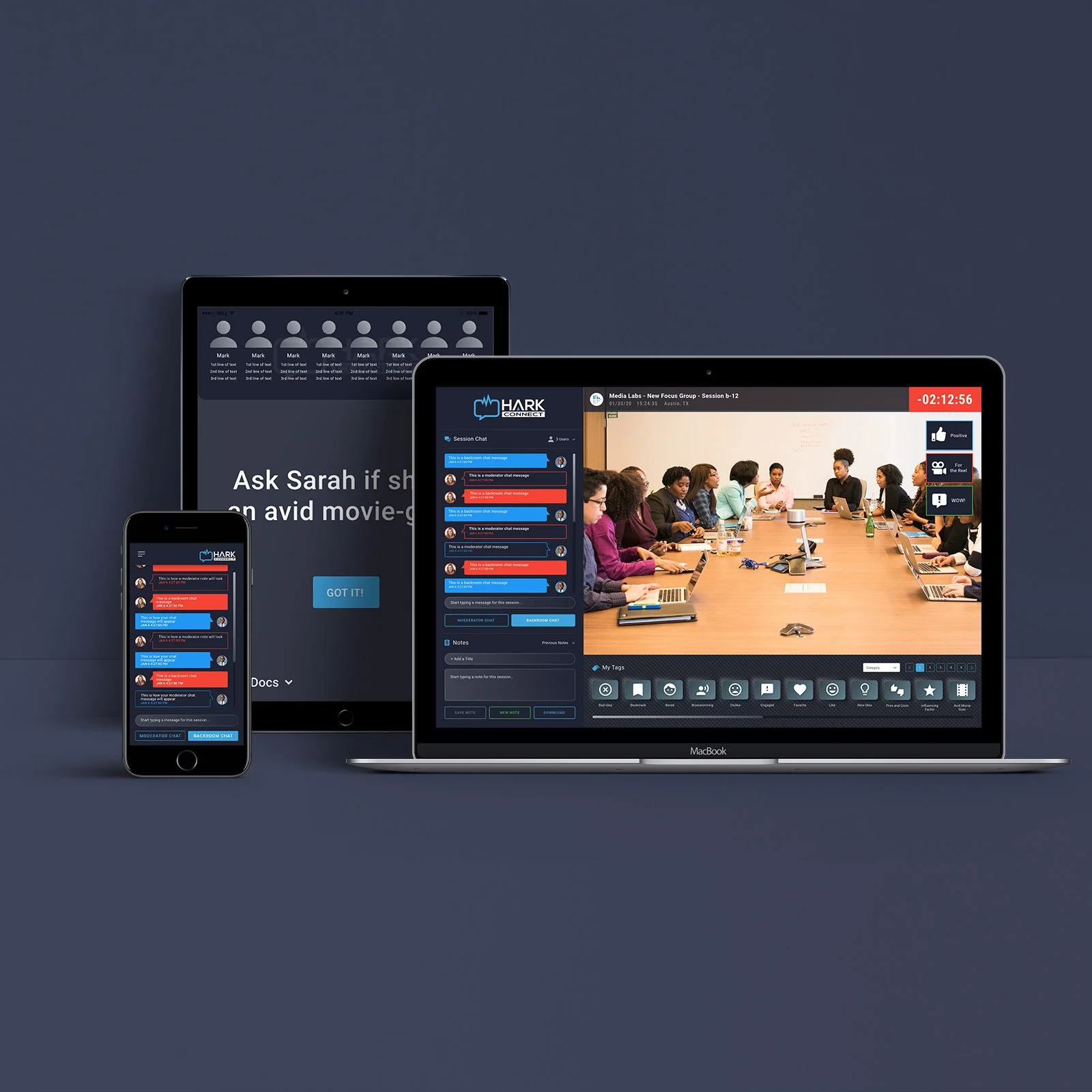 I was user experience designer for the qualitative research application, HARK Connect. The software enables seamless focus group online viewing and live streaming in addition to a wide array of features including multi-language simultaneous translation, fast access to transcripts and videos, and emotional measurement analysis.
